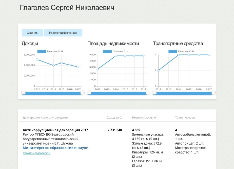 У самого ректора БГТУ есть, где развернуться: пять земельных участков, два жилых дома, две квартиры и три гаража, мотоцикл Suzuki и автомобиль Audi Q5. Даже без гаражей и по самым скромным оценкам все это стоит порядка 40 млн рублей, что никак не соотносится с его официальными доходами.