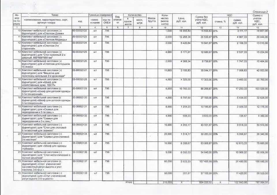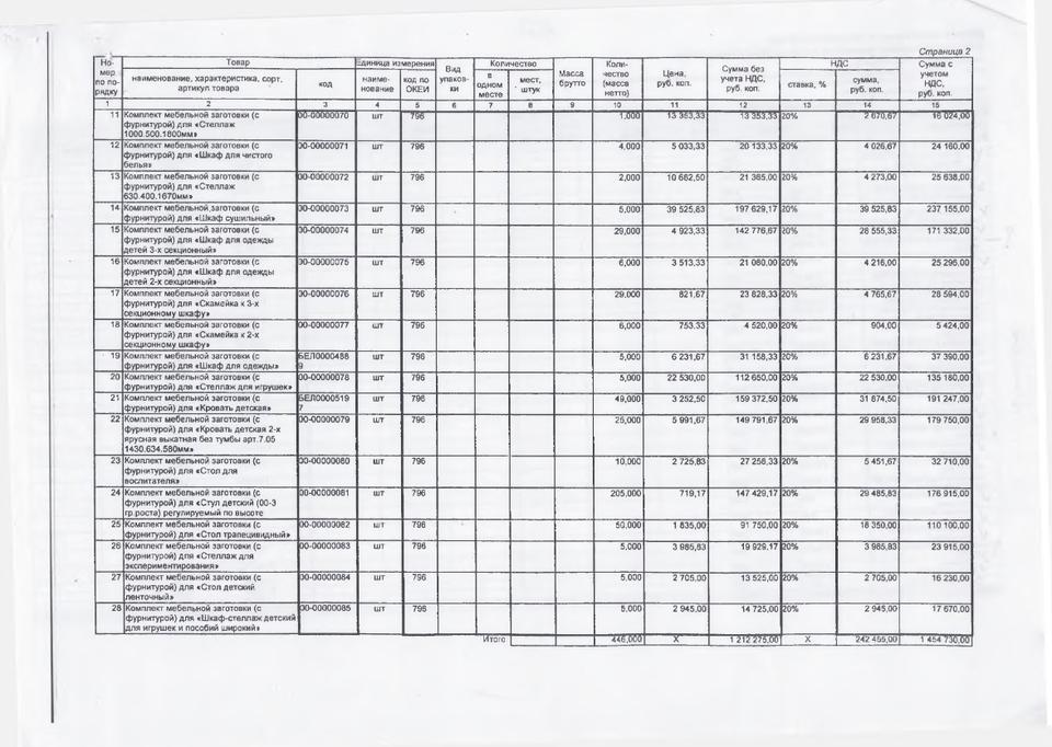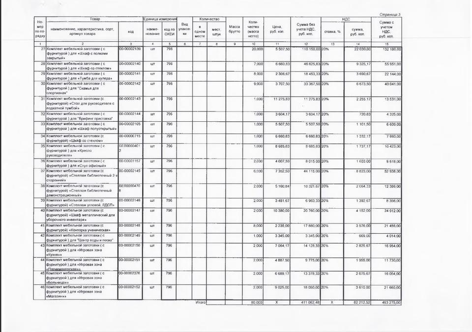 За 2,3 млн рублей собираются купить ассортимент мебели. ИК-5 заключает контракт с поставщиком мебели на 2 млн рублей — согласно накладной, список мебели идентичен тому, что прислал заказчик (УКС по Белгородской области).