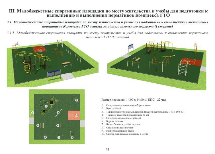 Постройка площадок ГТО спонсируется федеральным бюджетом, потому что есть определённая программа. Также есть методические рекомендации, утверждённые министром спорта, о том, как эти площадки должны выглядеть. В схемах указано всё, вплоть до размеров.