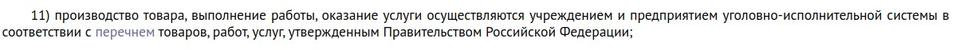 Если с поставщиками света, воды, газа и ЖД-билетов понятно, почему они продаются без торгов, то почему так же поступают с товарами и услугами колоний? Закон содержит целый перечень оснований для заключения контрактов без торгов, и каким-то чудом туда попали и контракты с учреждениями и предприятиями уголовно-исполнительной системы.